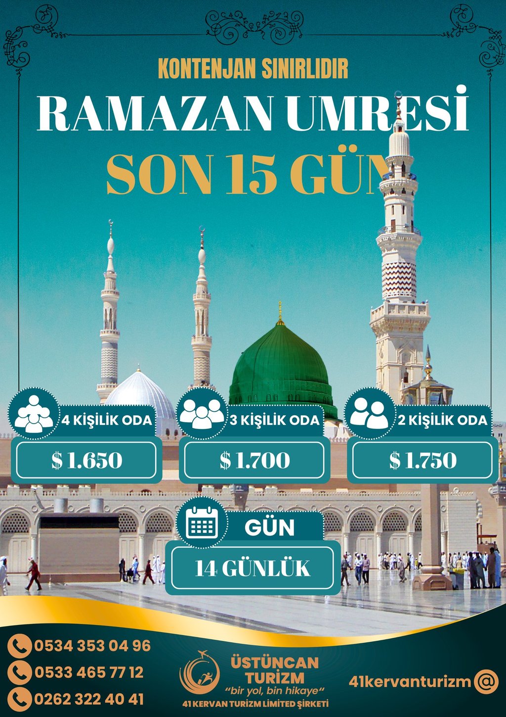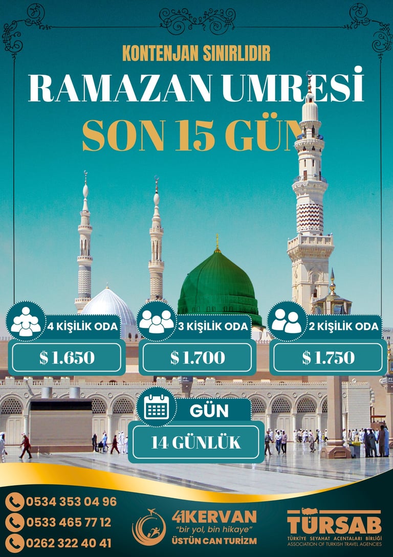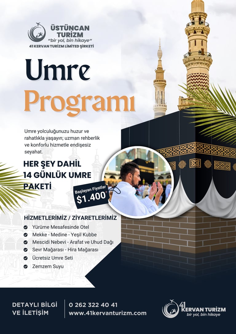 Hac, umre ve kültür turları sunuyoruz. Bu turlar, kutsal mekanları ziyaret etmeyi ve kültürel zenginliklerimizi keşfetmeyi hedeflemektedir. Katılımcılar, manevi ve tarihsel bir deneyim yaşayacaklardır.