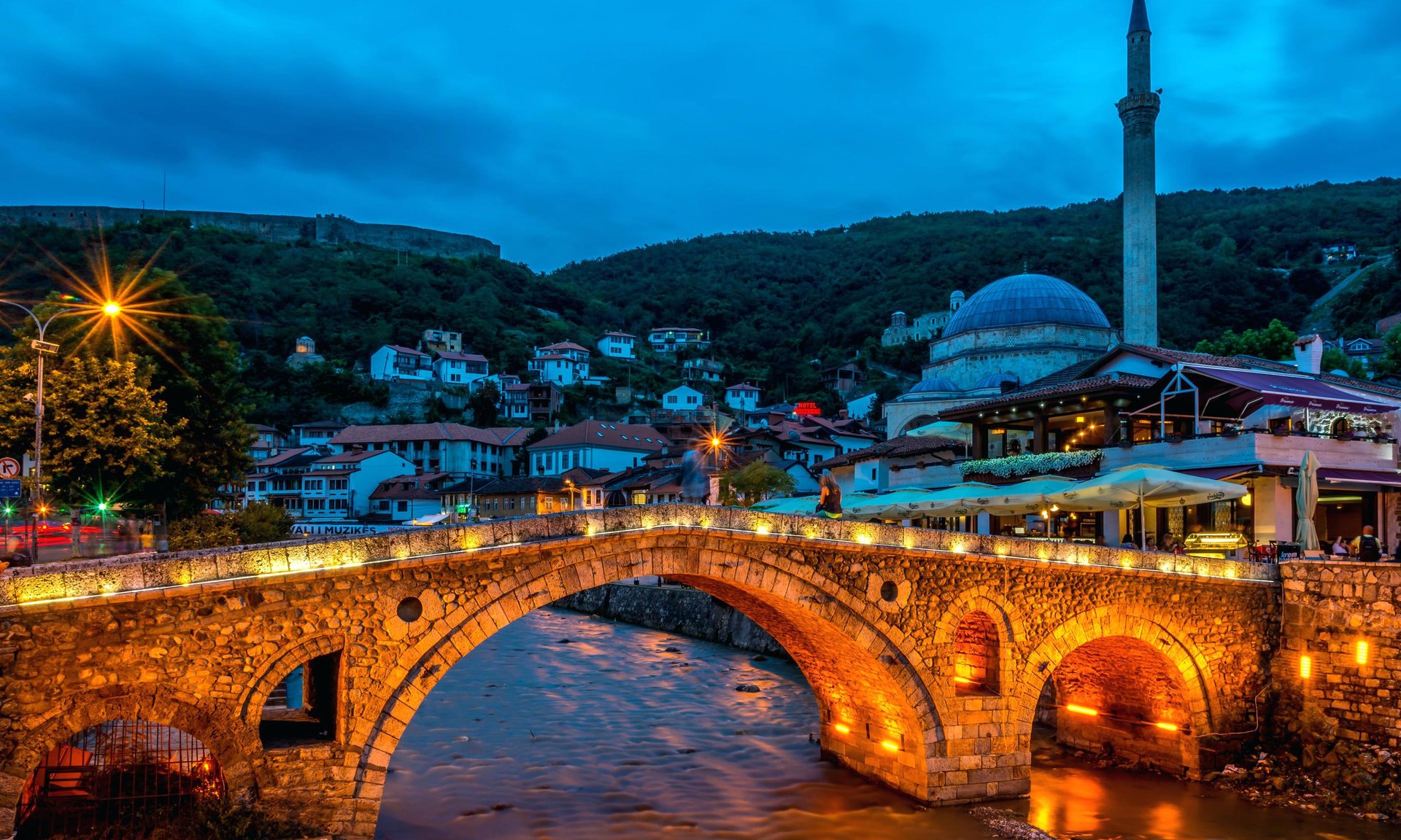 Prizren gezisi: Bayraklı Camii, Gazi Mehmed Paşa Hamamı, Halveti Dergahı, Prizren Köprüsü, Şadırvan Meydanı.